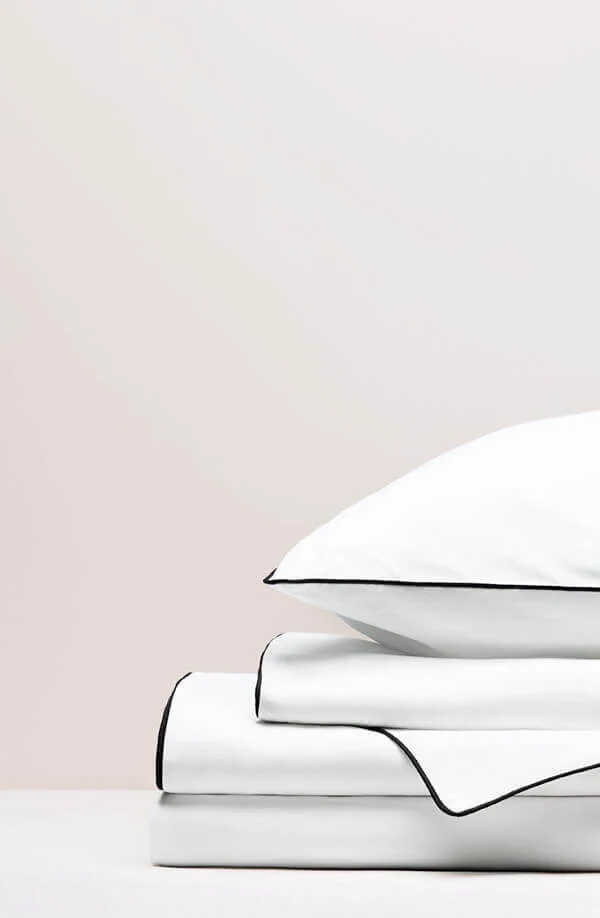 Parure de lit: Greige, Percale passepoil, col. noir